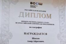 Поздравляем ученика 11А класса Шаехова Амира, который стал призером регионального этапа Всероссийской олимпиады школьников по географии!