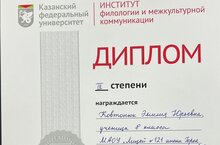 Ученица 8Б класса Ковтонюк Эмилия (науч. руководитель: Тарасов И.А.) награждена Дипломом III степени за исследовательскую работу.
