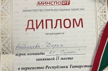 Ученица 8Б класса Кодинцева Дарья в первенстве Республики Татарстан по баскетболу заняла 2 место.