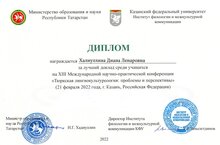 Ученица 10А класса нашего Центра образования Халиуллина Диана (научные руководители Валиуллина Р.Х., Миннуллина А.И.) приняла участие в XIII Международной научно-практической конференции.