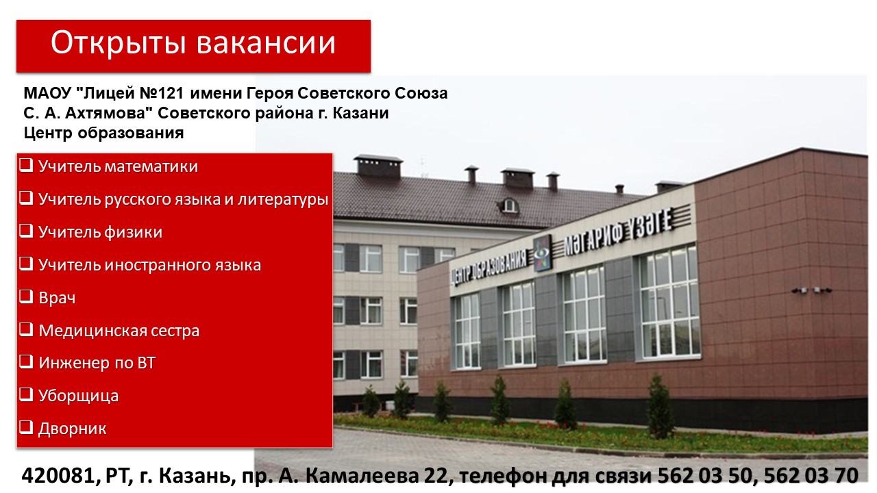 МАОУ "Лицей №121 имени Героя Советского Союза С. А. Ахтямова" Советского района г. Казани