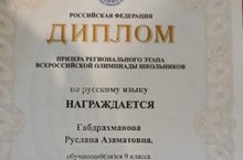 Поздравляем ученицу 9 класса Габдрахманову Руслану Азаматовну, призера регионального этапа Всероссийской олимпиады школьников по русскому языку.