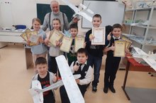 В день защитника Отечества на базе КСК "Олимп" сборная команда лицея приняла участие в Городских соревнованиях авиамоделистов-школьников на Кубок В.П.Чкалова в младшей возрастной категории. Наши юные авиамоделисты представили свободно летающие полукопии самолетов отечественной авиации, резиномоторные модели и модели планеров.