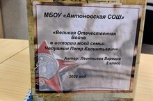 Ученица Антоновской школы Леонтьева Варвара вместе с педагогами Савельевой Н.В. и Шамсутдиновой А.Н. представили работу "Великая Отечественная Война в истории моей семьи. Челушкин Петр Калинтьевич" -