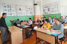 После торжественного открытия директор школы А.Н.Вихлянский провел экскурсию в кабинетах физики, химии и биологии, было представлено оборудование и проведены мастер-классы по его использованию.