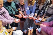 Сегодня активисты «Движения первых»нашей школы ,совместо с работниками сельского клуба культуры и работниками спортивного клуба Витязь, провели акцию « Журавлик Донбасса», посвященная Дню памяти детей-жертв войны в Донбассе. Дети с большим вниманием отнеслись к этой акции, читали стихи о мире и Родине, изготовили белых журавликов.
