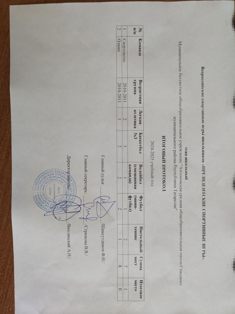 Итоговый протокол Всероссийские спортивные игры школьников "ПРЕЗИДЕНТСКИЕ ИГРЫ" (этап школьный)
