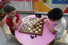 Сегодня наши воспитанники соривновались в игре в шашки.Победитель награжден грамотой детского сада.