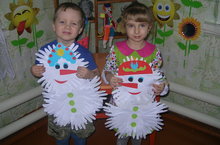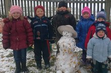 Выпал первый снег и наши дети слепили снеговика на прогулке
