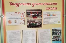 В рамках месячника школьных библиотек в школе оформлен информационный стенд, где размещен план мероприятий, положения о конкурсах и фрагменты фотографий из жизни библиотеки.