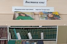 В рамках Года родных языков в школьной библиотеке была оформлена тематическая выставка литературных произведений, под названием «Национальные праздники народов Татарстана» (праздники весны).