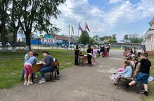 После обеда ребята трудились на пришкольном участке. Сегодня девчонки пропалывали лук, поливали грядки с морковью и свёклой, а мальчики убирали ветки с территории школы. Все были дружны и активны.