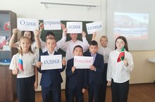 Акция «Одна страна, одна семья, одна Россия!» 30.09.2023 В преддверии памятной даты учащиеся школы приняли участие в акции «Одна страна, одна семья, одна Россия!». Учащимися школы была исполнена песня «С чего начинается Родина».