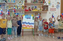 Воспитанники познакомились с одним из главных символов нашей страны — российским триколором. Ребята узнали, что флаг состоит из трёх полос: белой, синей и красной, каждая из которых имеет своё особое значение.Так же с ребятами была проведена физкультминутка "Марш с флажками".