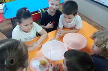 8 февраля отмечается День Российской науки в честь этого дня сегодня в средней группе провели различные эксперименты под названием: Эксперимент " Ожившие цветочки ". Раскрывание бумажных цветов в воде происходит благодаря эффекту капиллярности. Вода проникает в пустое пространство между волокнами бумаги и заполняет их. В итоге бумага разбухает, сгибы распрямляются, и цветок «распускается»."Шарик - магнит ". В результате кусочки бумаги прилипают к воздушному шарику.