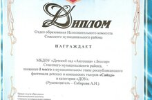 Наш педагог Сабирова Алсу Исмагиловна получила диплом за 1 место!