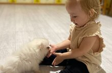 Наша воспитанница Мишенькина Есения проявляет ласку к своему питомцу. Педагог Петрова Валентина Владимировна.