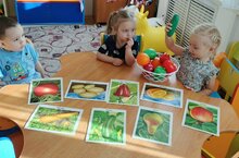 Сегодня наши малыши в утренний отрезок времени поговорили об овощах и фруктах, и их полезных свойствах для человека. А также что -это витамины полезные для здоровья. А также поиграли в игру "Разложи овощи и фрукты" по картинкам. Педагог Петрова Валентина Владимировна.