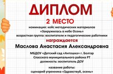 Наш педагог Маслова Анастасия Александровна получила диплом за 2 место за участие в Республиканском конкурсе.