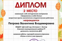 Наш педагог Петрова Валентина Владимировна получила диплом за 2 место за участие в Республиканском конкурсе.