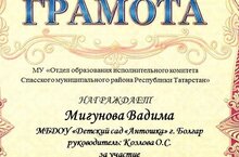 Наши воспитанники Мигунов Вадим и Козлова Елизавета получили грамоты , Мигунов Вадим за участие, а Козлова Елизавета за 2 место! Педагог Козлова Оксана Сергеевна
