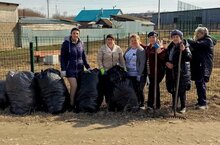 Сегодня сотрудники детского сада «Антошка» навели порядок на детской и спортивной площадках.