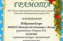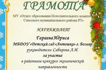Наши воспитанники средней группы получили грамоты за участие "Альтернативная новогодняя ель". Рубцова Самина заняла второе почётное место. Гараев Идрис грамоту за участие .Педагог Сабирова Алсу Исмагилловна.