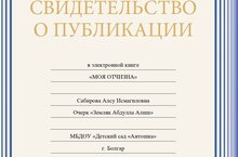 Наш педагог Сабирова Алсу Исмагиловна получила свидетельство о публикации!