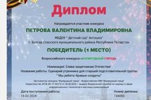 Наш педагог Петрова Валентина Владимировна получила диплом за 1 место!!!!