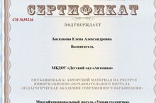 Наш педагог Баскакова Елена Александровна получила сертификат о публикации.