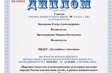 Наши педагоги Баскакова Елена Александровна и Проскурякова Марина Евгеньевна получили диплом 1 место по итогам профессионального педагогического конкурса.