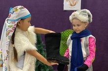 В старшей подготовительной и средней группах ко Дню Рождения А. Алиша была организована выставка книг, рисунков по мотивам сказок поэта и поделки родителей по сказкам А. Алиша. С детьми педагоги Сабирова Алсу Исмагилловна и Проскурякова Марина Евгеньевна провели по сказкам "Зайчишка" и " Два петуха" инсценировку, дети с удовольствием участвовали в театрализации.