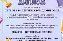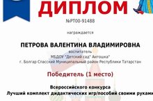 Наш педагог Петрова Валентина Владимировна получила диплом за 1 место за участие во Всероссийском конкурсе.