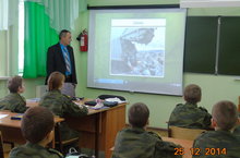 Перед 11-классниками школы выступил с рассказом о своей будущей профессии курсант Санкт-Петербургской военной Академии - Ахметвалеев Марат.