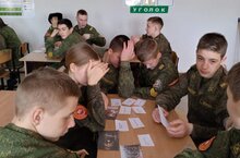 Кадеты объедини лись в 2 команды и отвечали на вопросы игры, в промежутках между раундами Учащиеся просматривали отрывки интервью Владимира владимировича Путина, которое он дал американскому журналисту Такеру Карлсону.