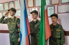 Новая учебная неделя началась с торжественного выноса флагов Российской Федерации и Республики Татарстан. Чести петь гимны под флагами удостоились кадеты 7 класса Хамзин Тимур и Киямов Илья
