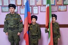 Традиционно по понедельникам проходят Разговоры о важном и линейка. Чести исполнить гимны под флагами РФ и РТ удостоились кадеты 1 взвода Чилимов и Маскалин.