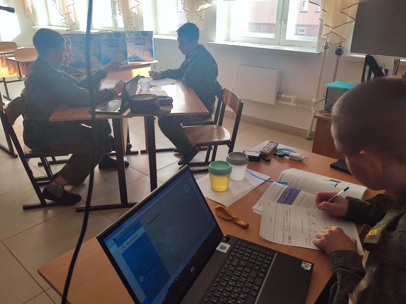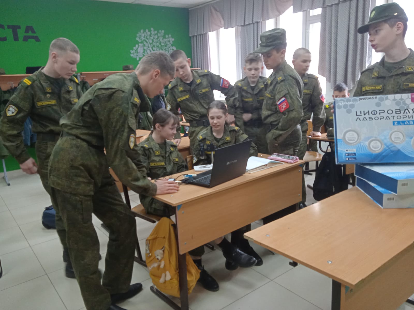 На занятии дополнительного образовании по физике учащиеся 7-8 классов выполнили практическую работу с использованием оборудования "Точка роста". Кадеты повторяли тему "Закон Паскаля",а именно определяли расчётное давление в жидкостях (вода и подсолнечное масло) и измеряли давление датчиком.