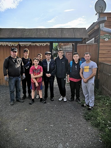 Опубликовано: 01.09.2020Учащиеся 7- 9 классов ГБОУ «Болгарская кадетская школа-интернат им. Карпова П.А.» вместе с воспитателями Вихлянским Д.Н. и Вихлянским А.Н. посетили заслуженного врача РТ Галимова Ф.Г. Кадеты узнали о жизни и труде этого замечательного человека, оказали помощь по хозяйству.