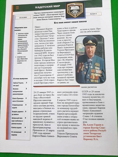Новости ГБОУ "Болгарская кадетская школа-интернат им. Карпова П.А."