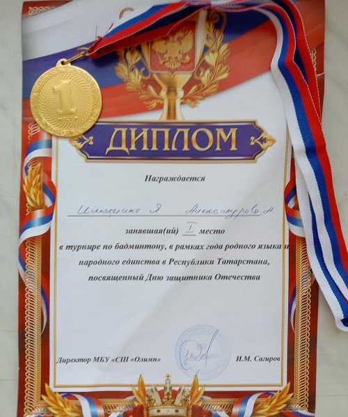 Опубликовано: 21.02.202121.02.2021 в МБУ СШ "Олимп" прошли соревнования по бадминтону, которые прошли в рамках года родного языка и народного единства в Республике Татарстан посвященный Дню защитника Отечества. 1 место в командной игре заняли Александрова Анастасия и Илюшина Яна - кадеты 8 класса.