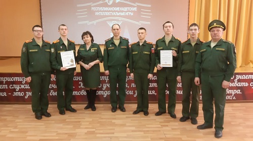 Опубликовано: 25.03.2021С 23 по 25 марта прошли Республиканские кадетские интеллектуальные игры на базе Казанской кадетской школы-интерната имени Героя Советского Союза Б.К.Кузнецова», участие в которых приняли кадеты нашей школы: Куценко Антон, Аверьянов Альберт, Тимофеев Никита, Самохвалов Иван, Широков Кирилл.