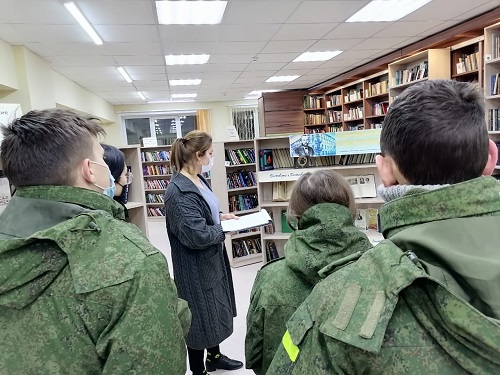 Опубликовано: 18.11.2021Учащиеся 9 класса посетили абонемент Центральной библиотеки, где их познакомили с выставкой "Читайте Достоевского, любите Достоевского!" (И. Анненский). Кадеты узнали биографические факты писателя, узнали, какие произведения написал Ф. М. Достоевский, ведь в этом году им предстоит познакомиться с его творчеством. Выставка была интересной и познавательной.