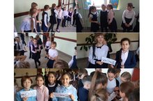 Учащиеся 1-3-х классов играли в веселую игру «Глухой телефон». Также ученицы 3б класса Бизяева Е. и Калимуллина А. провели для них игру на английском языке «Отгадай цвет». Для 5-6 классов был организован конкурс «Реши ребус». Активными участниками были Алибекова А., Салимова А., Емельянов В., Ширманов С., Шевченко К., Амосова В.(6а кл.), Салмина У., Филиппова Н. (5 б кл.)