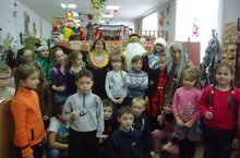 Сегодня ребят пригласили на новогоднюю ёлку в музей – заповедник. Там они встретились со Снегурочкой и Дедом Морозом, а так же были веселые клоуны, которые завлекали всех своим красочным нарядом. Этим мероприятием все остались довольны.