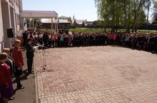 Сегодня возле школы звучали песни, торжественные речи. Прошла линейка, посвящённая главному празднику весны — Дню Победы. 07.05.2016