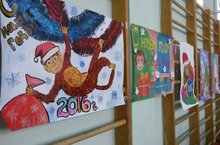 Школа готова к празднованию нового 2016 года, который пройдет под символом красной обезьяны. В рекреациях висят украшения, в коридорах стоят ёлки, но главная красавица находится в спортивном зале и ждёт возле себя новогодний хоровод, который пройдёт уже завтра для начальных классов.