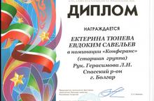 В номинации "конферанс " стали дипломантами Тюнева Екатерина 11 класс и Савельев Евдоким 9Б класс Рукводитель Герасимова Л.Н.