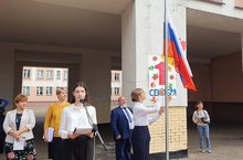 Право поднять флаги РФ и РТ предоставили Берендеевой Ирине ученице 9б класса и Никифоровой Полине ученице 8б класса.