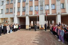Шольная линейка, посвящёная Дню знаний, началась с церемонии поднятия флагов России и Татарстана.